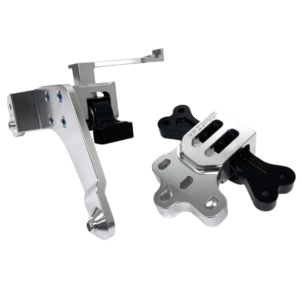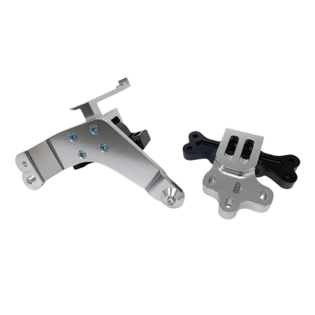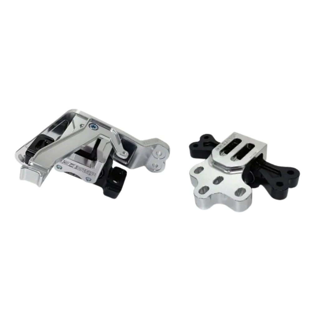The 034 Motorsport Motorsport TrackSport Engine/Transmission Mounting Pair is specially designed for the Audi 8S TTRS and 8V.5/8Y RS3 models, setting a new standard in ultra-high performance. These mounts are constructed from billet aluminum and high-durometer rubber, making them virtually indestructible. They offer better handling characteristics than polyurethane alternatives and are guaranteed for life, regardless of the power output or track type. Motorsport TrackSport Mounts They are completely free of air and fluids, eliminating the play often found with factory engine and transmission mounts. They are designed to dramatically reduce engine movement compared to the original components, resulting in more direct power transfer and an improved shifting experience. It's important to note that these extreme-duty mounts will increase the transfer of noise, vibration, and harshness (NVH) into the car's interior. This is a consequence of the design, which focuses on reducing engine movement.