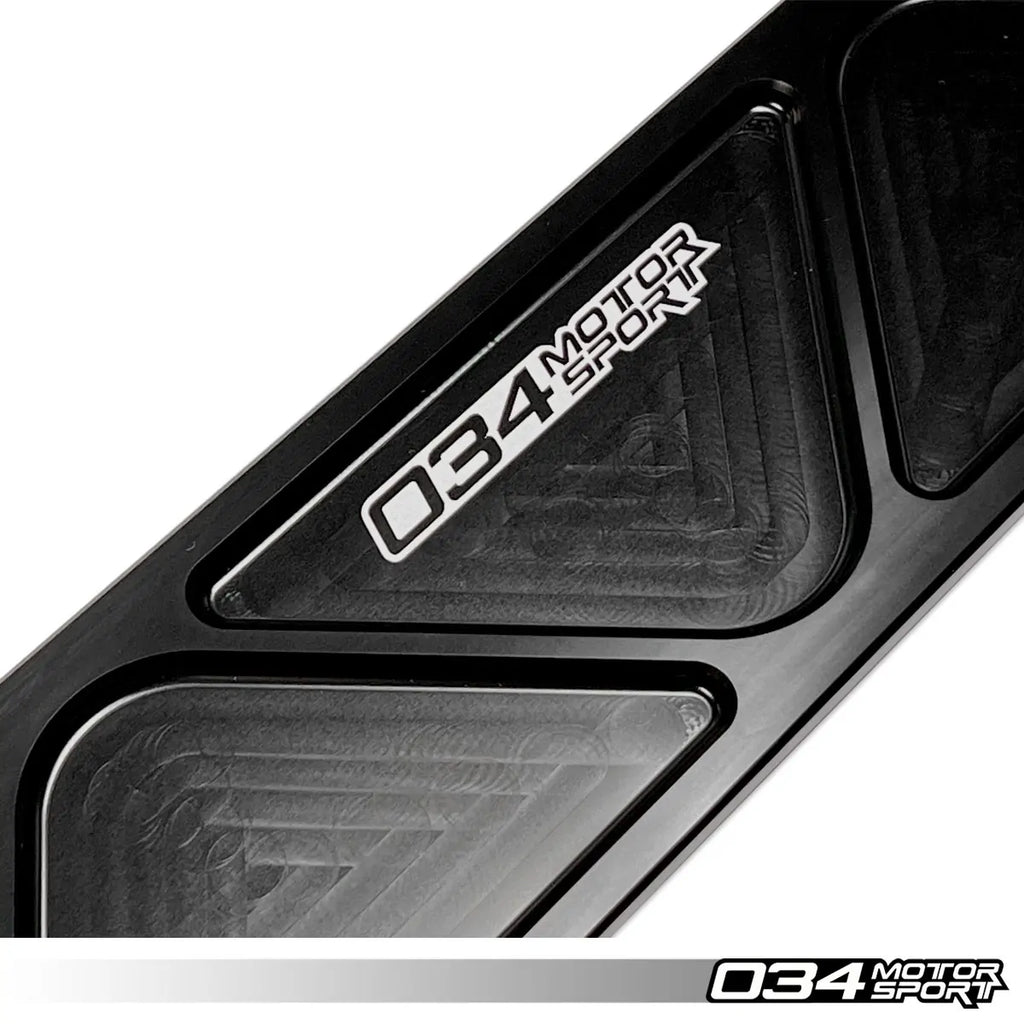 De 034Motorsport X-Clear Driveshaft Tunnel Brace biedt extra ruimte voor aftermarket uitlaatsystemen door de ondiepe OEM tunnelbrace te vervangen. Dit zorgt ervoor dat uitlaten met een grotere diameter kunnen worden geïnstalleerd zonder dat er hinderlijke trillingen of geluiden ontstaan. Deze tunnelbrace, speciaal ontworpen voor FWD MQB en MQB EVO modellen van Volkswagen en Audi, vergroot de uitlaatruimte met 8 mm ten opzichte van de originele brace. De brace is gemaakt van CNC-gefreesd 6061-T6 aluminium en voorzien van een duurzame zwarte anodisering met een lasergegraveerd 034Motorsport-logo. Dit biedt niet alleen meer ruimte, maar ook extra stevigheid in vergelijking met de OE-stalen brace. Dankzij de snelle en eenvoudige montage is er geen extra geluid, trillingen of hardheid (NVH).