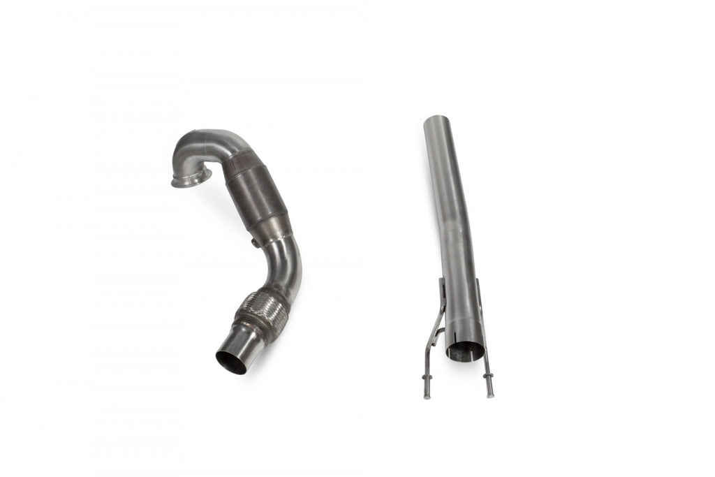 The Scorpion Sport Catalytic Converter Downpipe is a high-quality upgrade specifically designed for the Ibiza Cupra 6P and Polo 6C GTI . This downpipe is made of 100% T304 stainless steel, which not only ensures excellent durability but also improves engine performance. With a 3"/76mm pipe diameter and mandrel-bent tubing, this downpipe provides optimal airflow, resulting in increased engine response and more efficient operation. Installation is exceptionally easy thanks to the direct bolt-on mounting. This means you don't need to make any modifications to your vehicle, making it an ideal choice for both daily drivers and enthusiasts looking to optimize their ride. The kit includes a reducer to the OEM catback and comes with all the necessary hardware and instructions, so you can get started without any hassle. Furthermore, the 0.5kg weight reduction provides a sportier driving experience, allowing you to drive faster and more responsively. Another key feature of the Scorpion Sport Catalyst Downpipe is its TIG-welded construction, which ensures strong and reliable connections. This construction method ensures that the downpipe can withstand the high temperatures and pressures associated with performance improvements. With this upgrade, you'll not only enjoy increased engine performance but also a sportier sound that further enriches your driving experience. The Scorpion Sport Catalyst Downpipe is designed to bring out the best in your Ibiza Cupra 6P or Polo 6C GTI . This downpipe helps improve the overall engine performance, allowing you to generate more power and torque.